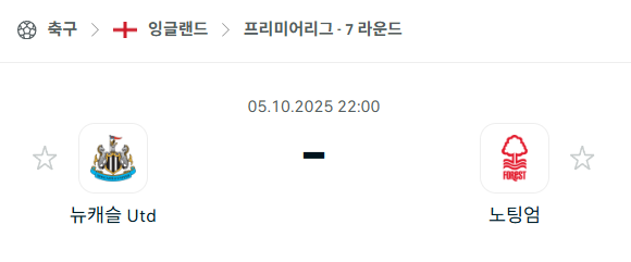 [EPL 프리미어리그] 2025년10월5일 뉴캐슬 유나이티드 vs 노팅엄 포레스트 분석 중계