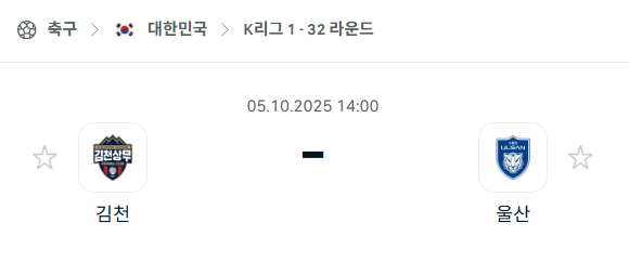 이번 경기는 안정적인 전술과 조직력을 갖춘 김천 상무와 불안정한 전술 실험 속에서 흔들리는 울산HD의 맞대결입니다.