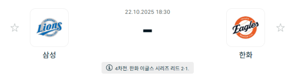 [KBO 프로야구] 2025년10월22일 삼성 라이온즈 vs 한화 이글스 분석 중계