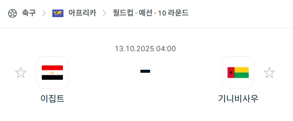 [아프리카 월드컵예선] 2025년10월13일 이집트 vs 기니비사우 분석 중계