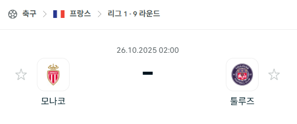 [프랑스 리그앙] 2025년10월26일 AS 모나코 vs 툴루즈 분석 중계