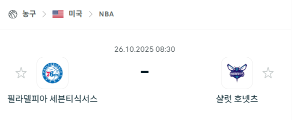 2025년 10월 26일에 열리는 NBA 필라델피아 세븐티식서스와 샬럿 호네츠의 경기 분석입니다. 이번 경기는