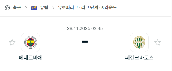 [UEFA 유로파리그] 2025년11월28일 페네르바체 vs 페렌츠바로시 분석 중계