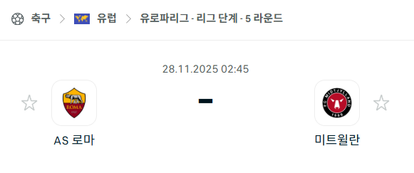 [UEFA 유로파리그] 2025년11월28일 AS로마 vs 미트윌란 분석 중계