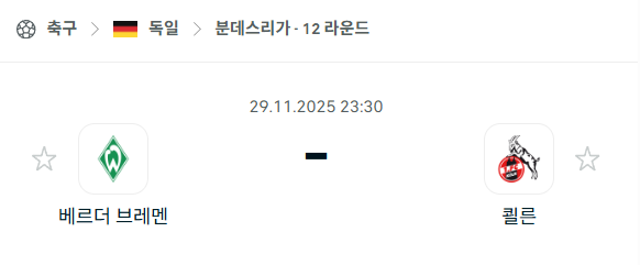[독일 분데스리가] 2025년11월29일 베르더 브레멘 vs 쾰른 분석 중계