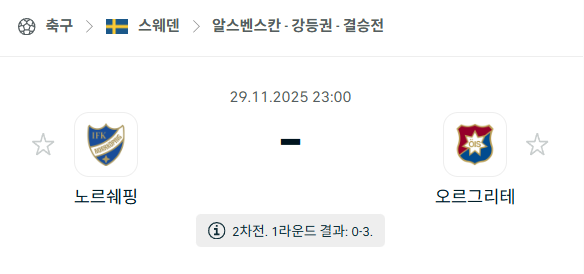 [스웨덴 알스벤스칸] 2025년11월29일 노르셰핑 vs 오르그리테 분석 중계
