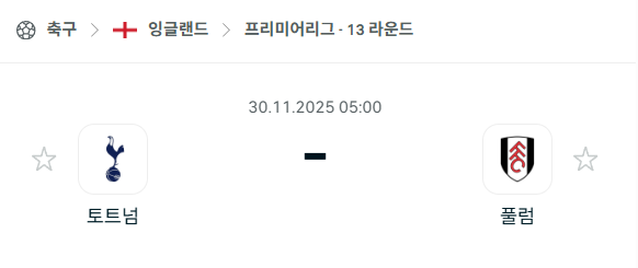 2025년 11월 30일에 열리는 잉글랜드 프리미어리그의 토트넘 홋스퍼 풀럼 경기 분석입니다. 최근