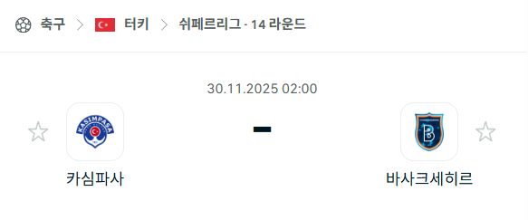 [터키 쉬페르리그] 2025년11월30일 카심파사 vs 바사크셰히르 분석 중계