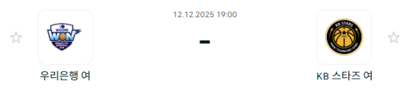 [대한민국 WKBL] 2025년12월12일 우리은행 우리WON vs 청주 KB스타즈 중계
