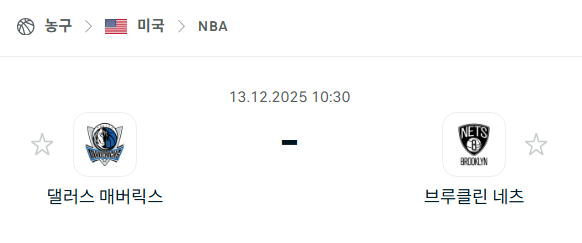 [미국 NBA] 2025년12월13일 댈러스 매버릭스 vs 브루클린 네츠 분석 중계