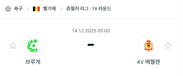 [벨기에 쥬필러리그] 2025년12월14일 브루게 vs 메헬렌 분석 중계