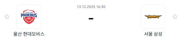 [대한민국 KBL] 2025년12월13일 울산 현대모비스 피버스 vs 서울 삼성 썬더스 중계