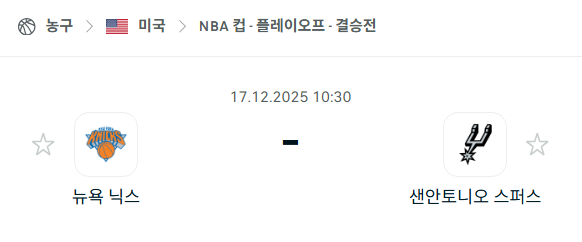 [미국 NBA] 2025년12월17일 뉴욕 닉스 vs 샌안토니오 스퍼스 분석 중계