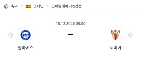 2025년 12월18일에 열리는 코파 델 레이의 데포르티보 알라베스와 세비야 경기 분석입니다. 이번 경기는 32강전에서 유일하게 라리가 팀끼리 맞붙는 대진으로, 리그 일정과는 다른 컵대회 특유의 긴장감이 강하게 작용할 수 있는 경기입니다. 장소는 알라베스의 홈구장 멘디소로차 스타디움이며, 최근 리그에서도 같은 장소에서 맞붙어 세비야가 승리를 거둔 바 있어 리턴 매치 성격도 함께 지니고 있습니다.
