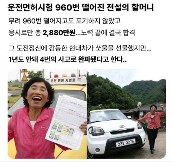 [기타] 960번 면허시험 떨어진 할머니 최후