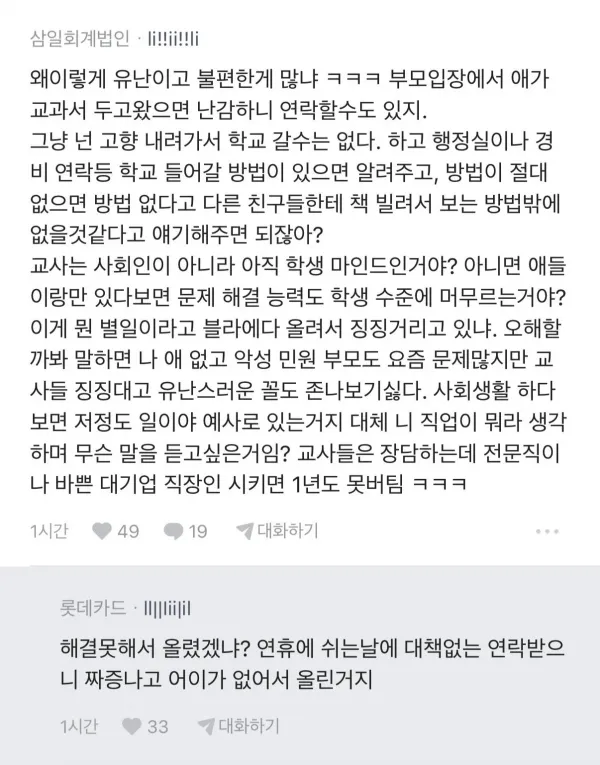 [기타] 연휴에 학부모에게 난감한 문자받은 교사