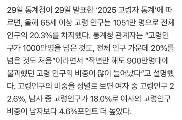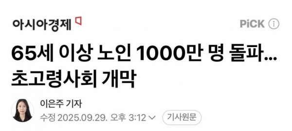 [기타] 사상최초로 노인인구 1000만명 돌파함