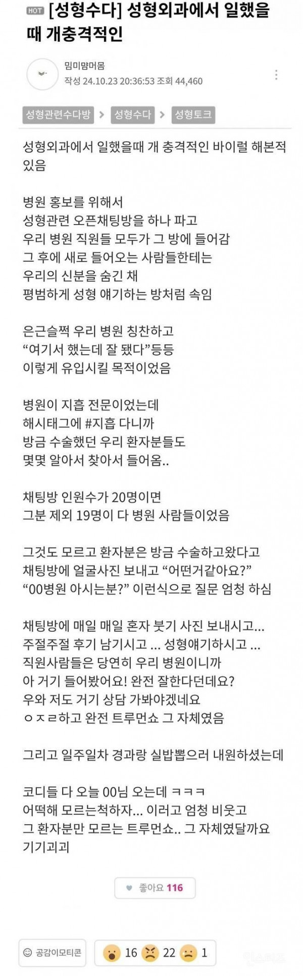 [기타] 성형외과에서 일했던 사람이 했었던 충격적인 업무