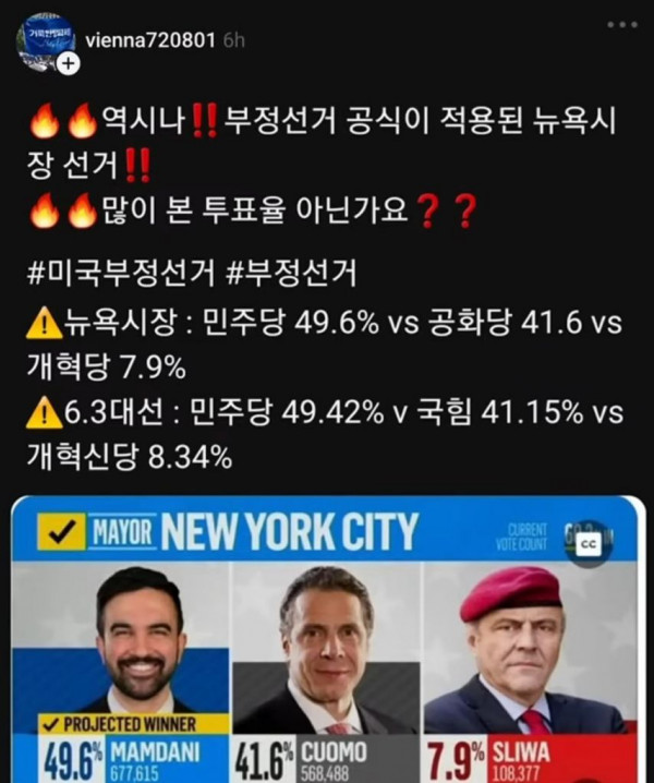 [유머] 뉴욕시장 선거에서도 부즈엉 선거 증거나옴!!!