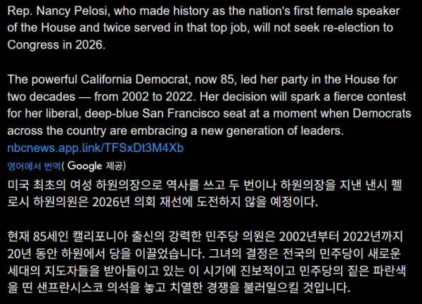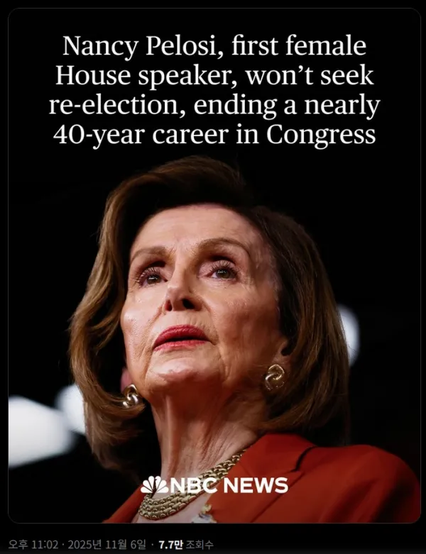 [사회] 낸시 펠로시 정계 은퇴선언