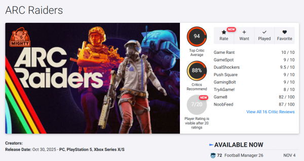 [기타] 넥슨 신작 <아크 레이더스> 오픈크리틱 94점