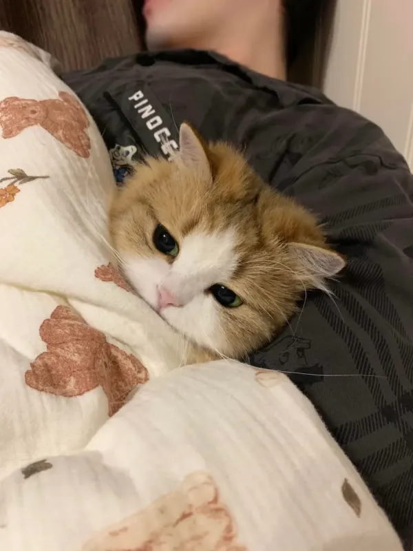 [동물] 집사 품에서 자다 깬 냐옹이...
