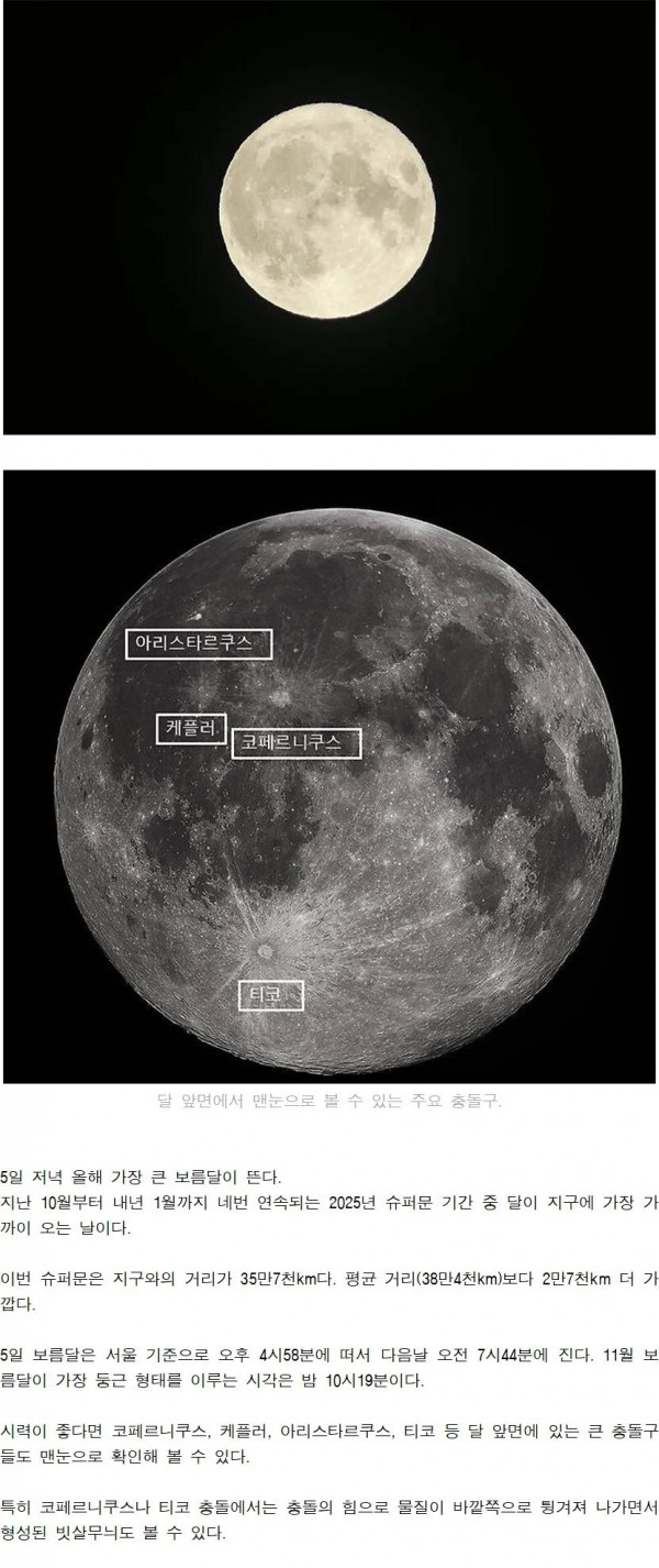 [정보] 오늘 저녁 가장 큰 보름달…시력 좋다면 ‘달의 상처’ 보인다.