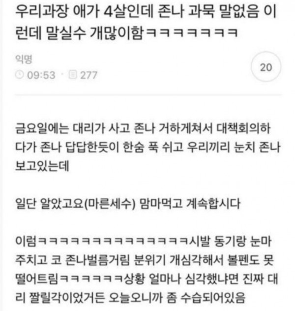[유머] 우리 과장 애가 4살인데 말실수 개많이 함.jpg
