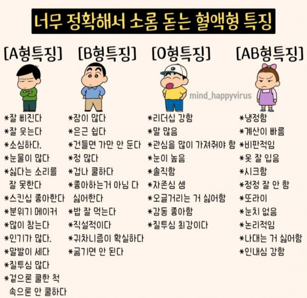 [정보] 너무 정확한 혈액형 특징