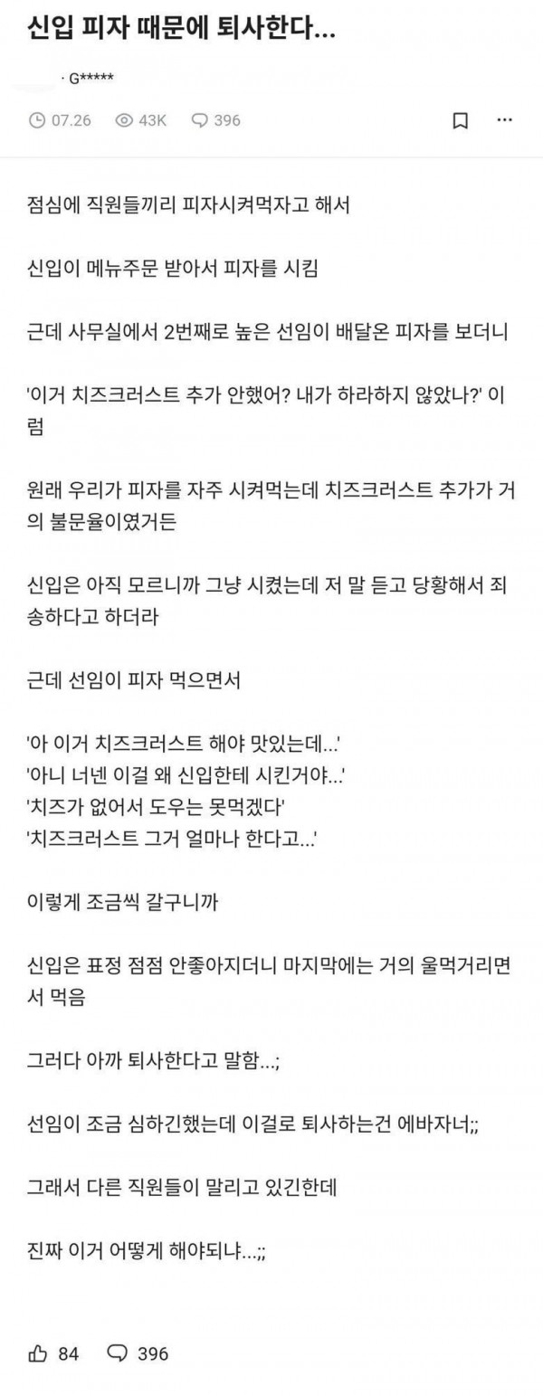 [엽기] 신입직원 피자 때문에 퇴사한다