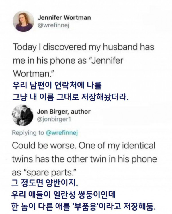 [기타] 쌍둥이들이 상대방 이름을 저장하는 방법