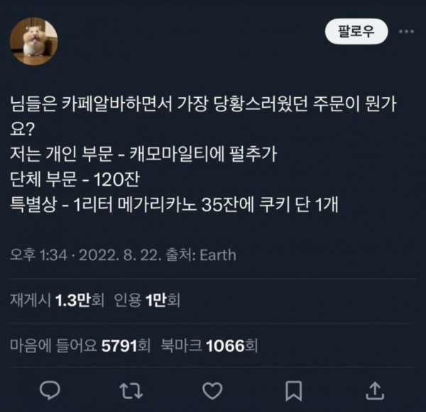 [유머] 카페 알바생들이 받은 황당한 주문 모음.