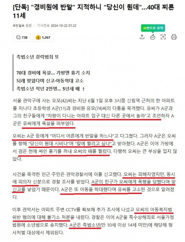 [유머] 가방에서 칼을 꺼내 40대를 찌른 초등학생