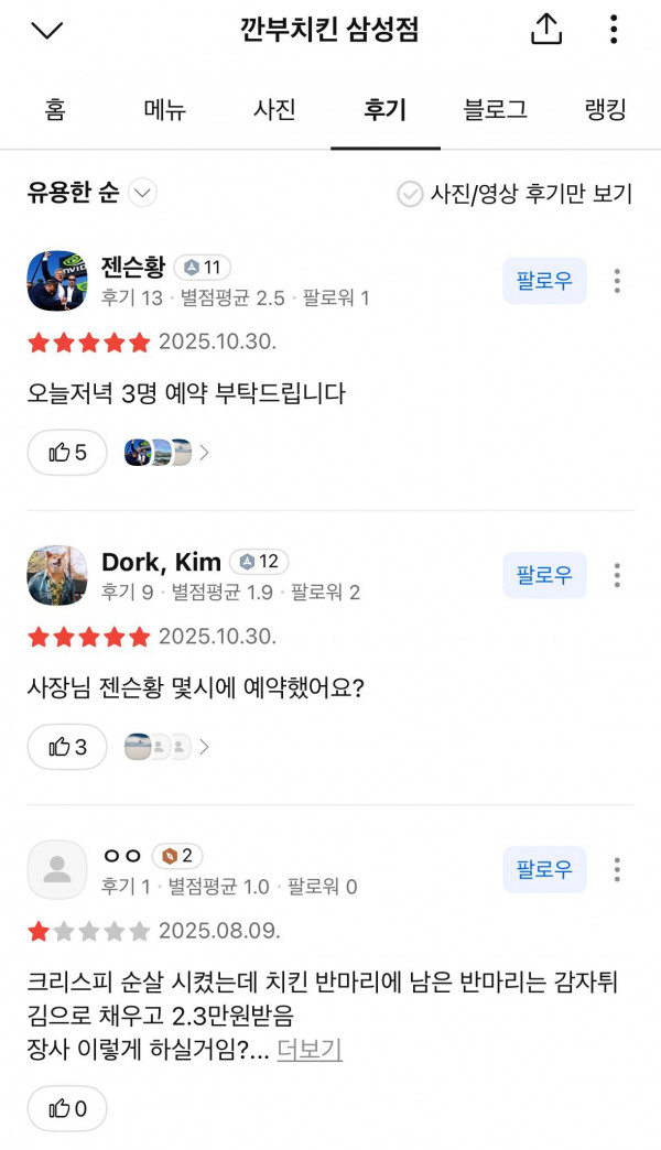 [유머] 깐부치킨 삼성점 리뷰 근황