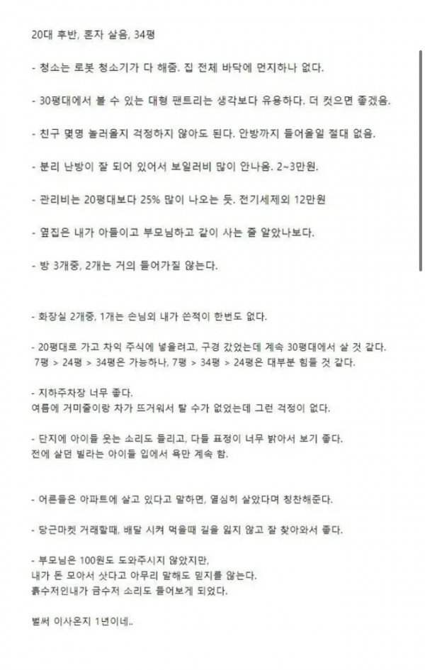 [기타] 34평 아파트 1년 동안 살아본 후기