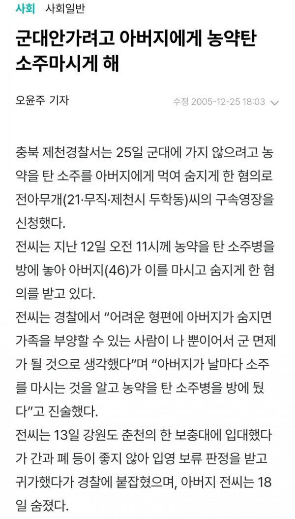 [기타] 05년도 일...군대 가기 싫어서 아버지에게 농약 먹인 아들.jpg