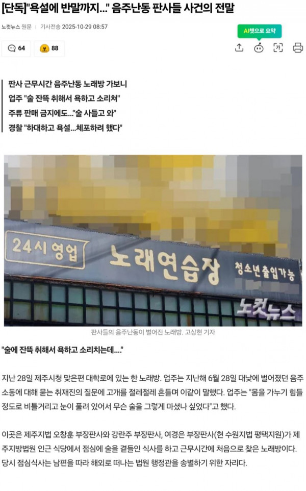 [엽기] 근무 시간에 '노래방 음주난동 판사들' 사건의 전말