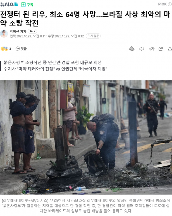 [기타] 브라질 마약 카르텔 소탕 작전, 전쟁터가 된 리우 데 자네이루
