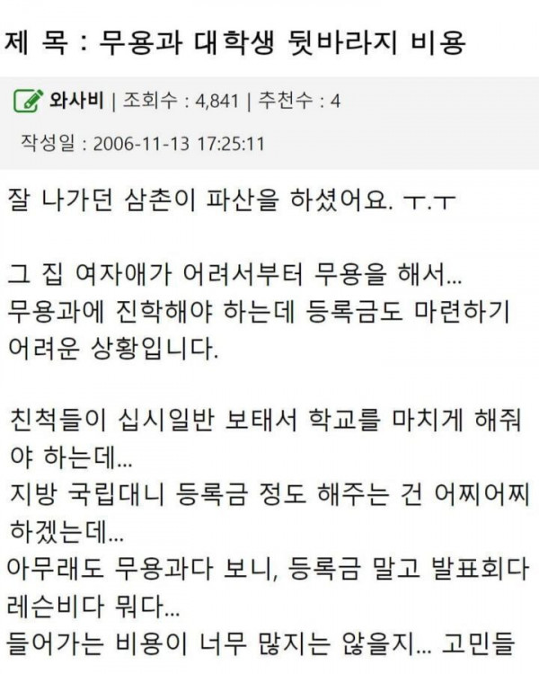 [기타] 무용과 대학생 뒷바라지 비용.jpg