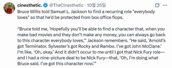 [기타] 브루스 윌리스가 사무엘 잭슨에게 했던 충고