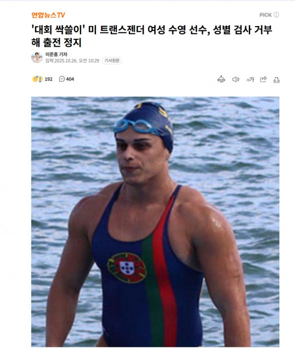 [유머] '대회 싹쓸이' 미 트랜스젠더 여성 수영 선수, 성별 검사 거부해 출전 정지