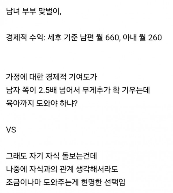 [유머] 돈 많이 버는 남편이 육아까지 도와야 하냐.jpg