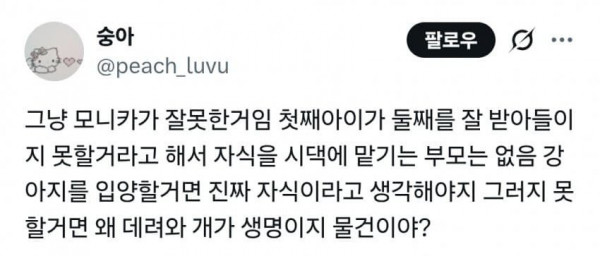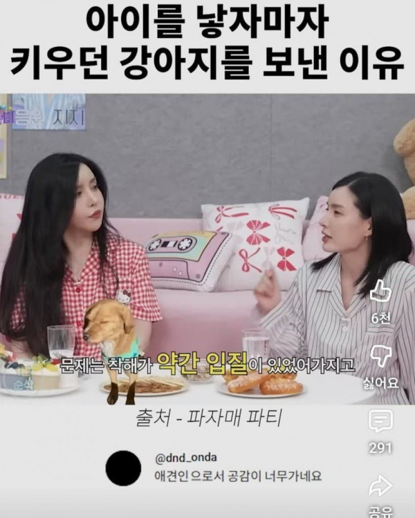 [엽기] 아이를 낳고 키우던 개를 시댁에 보냄