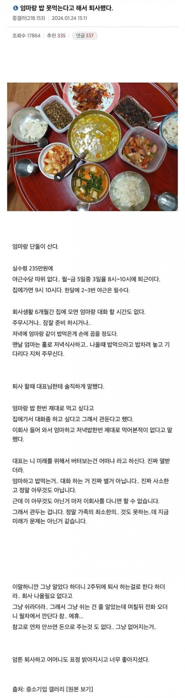 [기타] 어머니랑 밥 못먹는다고 해서 퇴사한 사람.