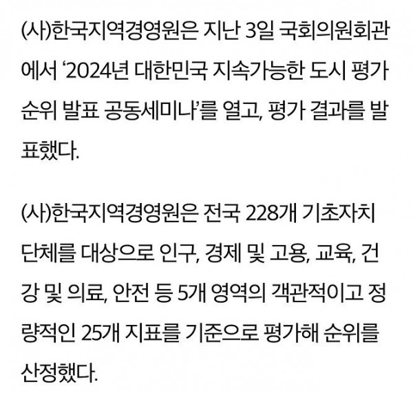 [순위] 한국에서 살기좋은 도시 순위 100위