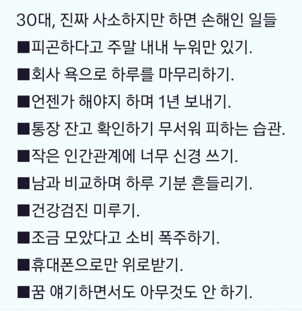 [유머] 30대, 진짜 사소하지만 하면 손해인 일들.