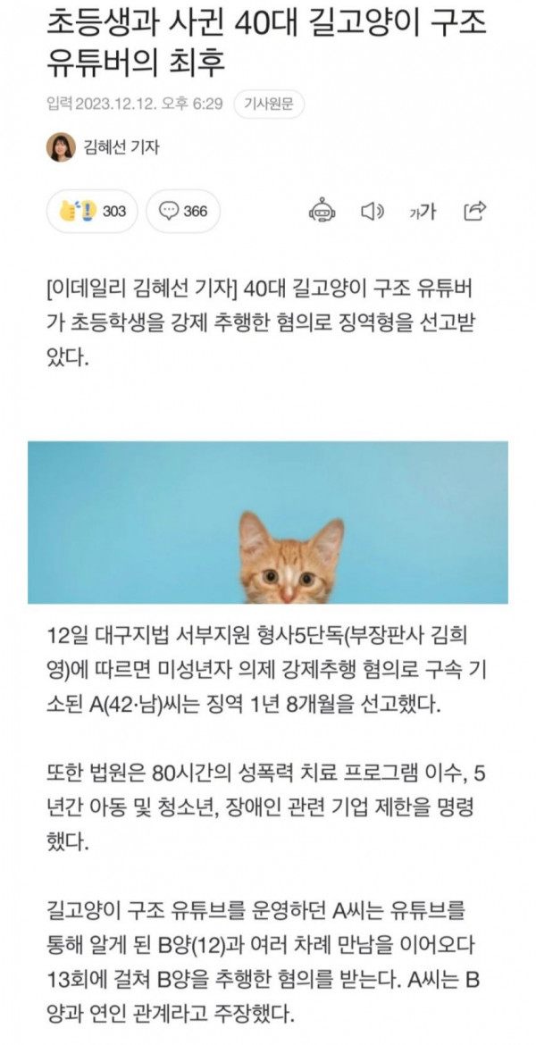 [기타] 캣대디 초등학생 성추행으로 징역형