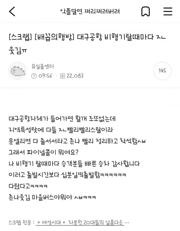 [유머] 대구공항 비행기탈때마다 웃김...