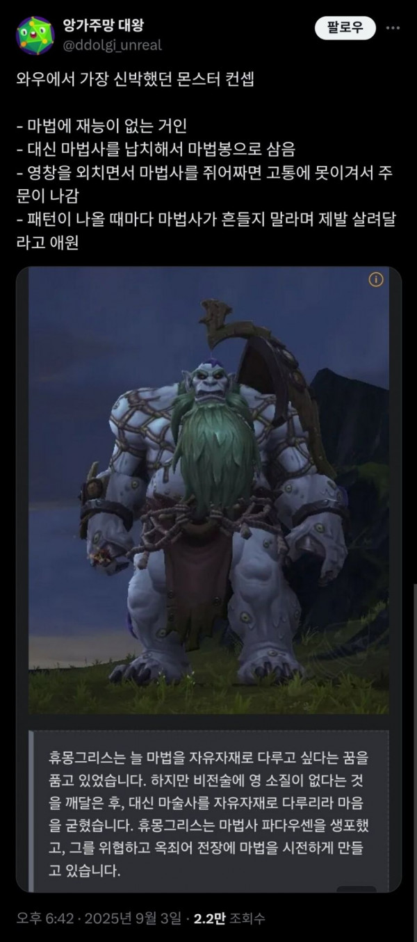 [유머] 와우에서 가장 신박한 몬스터 컨셉.