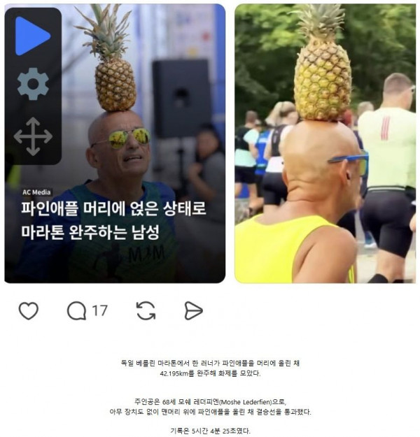 [유머] 파인애플 머리에 얹은 상태로 마라톤 완주.